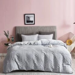Ensemble De Lit Gris 100% Lin Naturel, Drap Plat Et 2 Taies Dâoreillers
