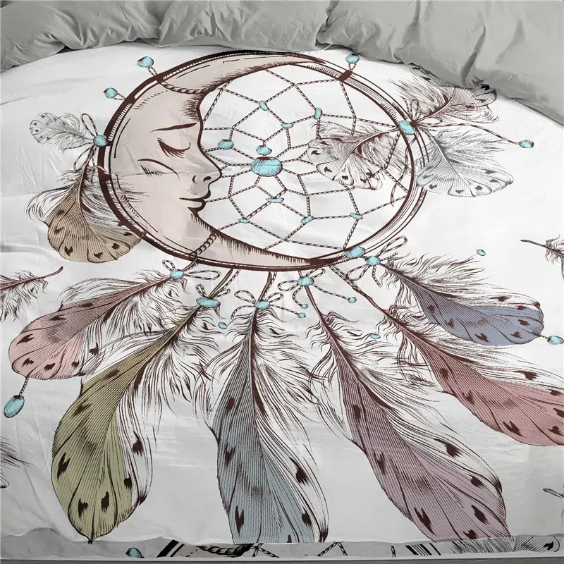 Cette attrape-rêve fera de vos nuits des nuits pleines de jolis rêves. Cette parure de lit apportera la touche finale à votre déco zen avec ces douces couleurs.Â