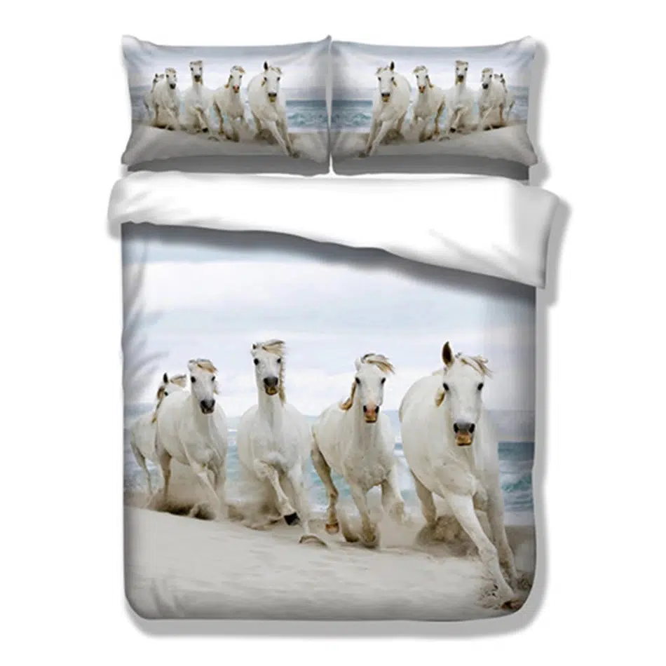 Ornez votre lit avec cette jolie parure de lit cheval. Classe et élégante, elle apportera une touche originale et nordique à la décoration de votre chambre.