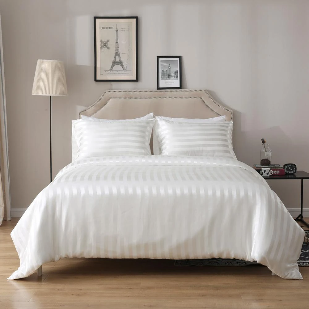 Un motif élégant et intemporel pour un rendu chic. Cette parure blanche rayée sublimera votre chambre.