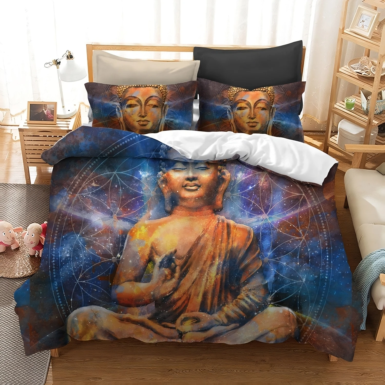 L’imprimé de la parure de lit bouddha bleu est le symbole universel sacré de revitalisation. Le toucher frais et lisse de la parure pour votre chambre renforce la sensation de relaxation et de confort.