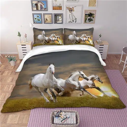 Cette belle parure de lit cheval nâa pas que son charme et sa beautĂ© Ă offrir. Sa douceur ne manquera pas non plus de vous satisfaire.