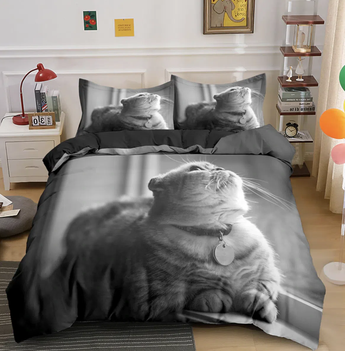 Cette belle parure de lit double noire et blanche imprimée d’un adorable chat rêveur apporte douceur et calme à votre chambre à coucher et vous promet de passer des nuits paisibles à souhait !