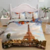 Parure De Lit Paris Ă Motif Tour Eiffel Et Arbres Aux Feuilles Rouges