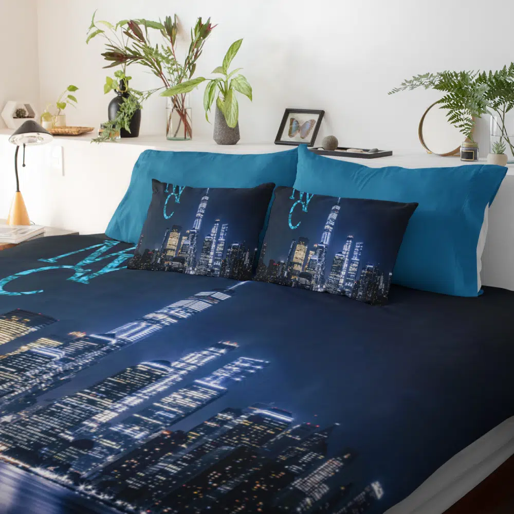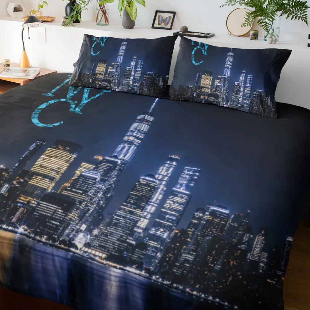 Transformez votre chambre en une escapade urbaine avec cette parure de lit inspirée de la skyline illuminée de New York. Le design vibrant capture la magie des gratte-ciel sous les lumières nocturnes, créant une atmosphère captivante et sophistiquée.