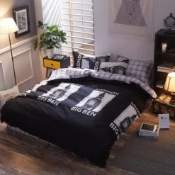 La ville des gens heureux s’invite dans votre chambre pour vous faire passez des nuits agrĂ©ables et reposante. La couleur bleu de cette parure de lit adoucira votre intĂ©rieur.Â