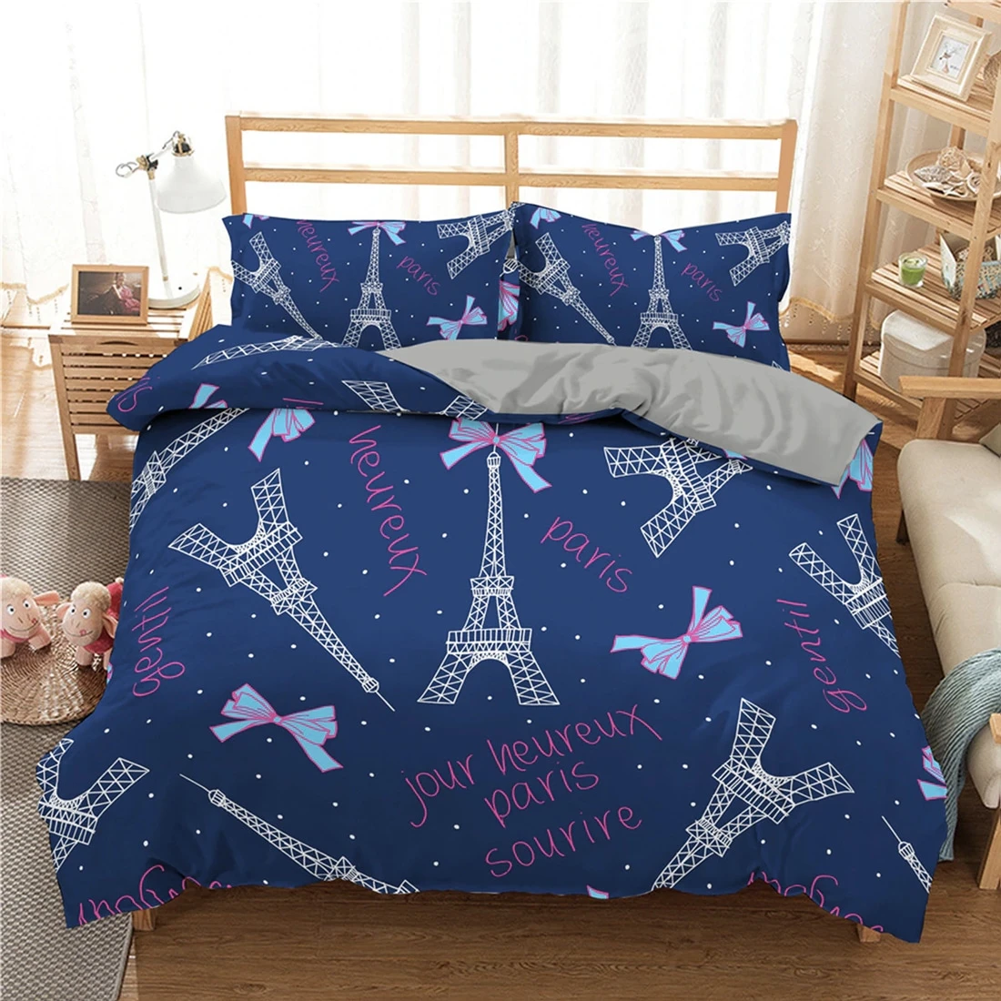 Parure De Lit Paris Ă Motif Tour Eiffel Et Arbres Aux Feuilles Rouges