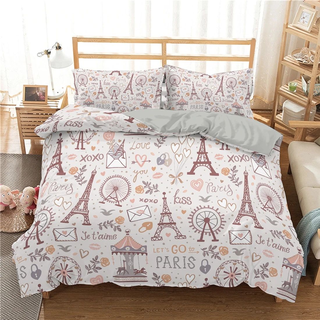 La ville de l’amour s’invite dans votre chambre avec cette parure de lit rose aux motifs pleins de douceur. Passez des nuits romantiques et agrĂ©ables avec cette parure de lit.Â