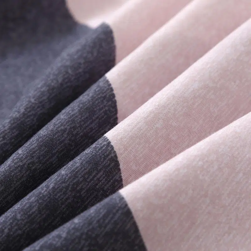 Le rose et le gris sont deux couleurs qui se marient très bien et donnent une atmosphère relaxante. Ces grosses rayures apporteront du volume Ă votre dĂ©co.Â