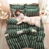 Une jolie parure de lit en coton pou vous faire passer des nuits douces et agrĂ©ables. Le vert apportera une touche de fraĂ®cheur Ă votre chambre.Â